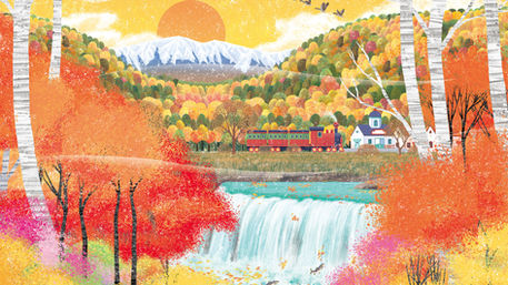 一方で、別のタッチで描かれる風景画も人気が高く、企業カレンダーなどでも採用されています。